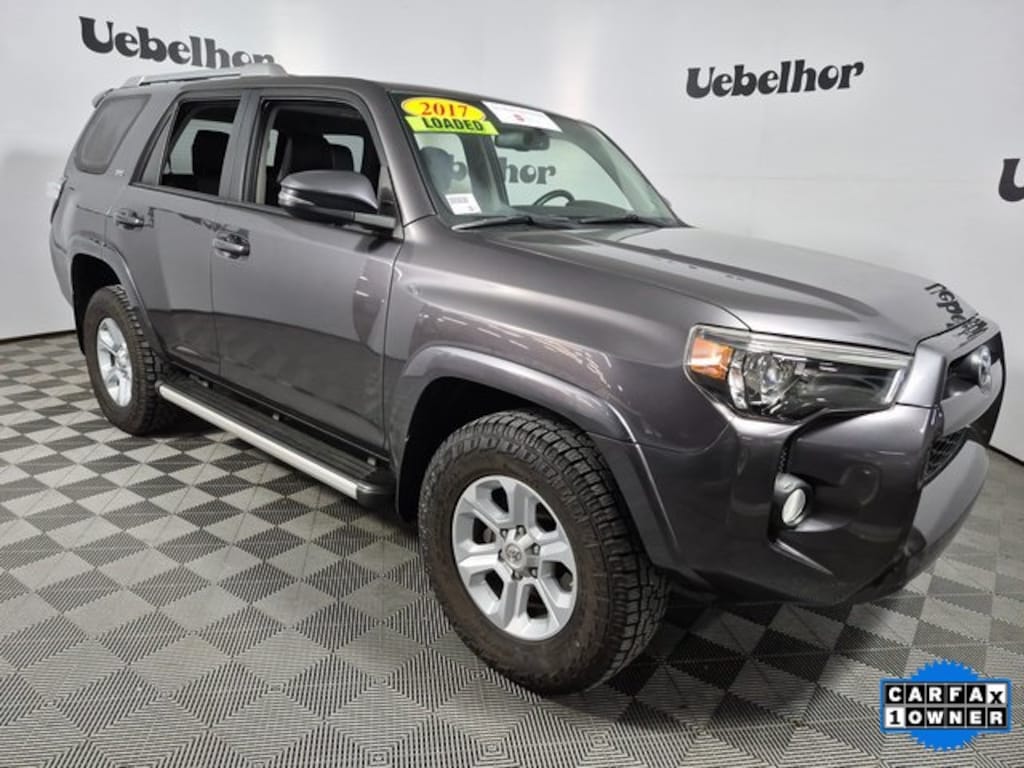 Certified. CARFAX One-Owner. 4Runner SR5 Premium, 4WD, Black Artificial Leather, ***BACK UP CAMERA***, ***BLUETOOTH***, ***HEATED SEATS***, ***LOCAL TRADE***, ***NAVIGATION***, ***NON SMOKER***, ***ONE OWNER***, ***SUNROOF***, All-Weather Floor Liners & Cargo Tray. 17/20 City/Highway MPG Gray 2017 Toyota 4Runner SR5 Premium 4WD 4.0L V6 SMPI DOHC 5-Speed Automatic with Overdrive